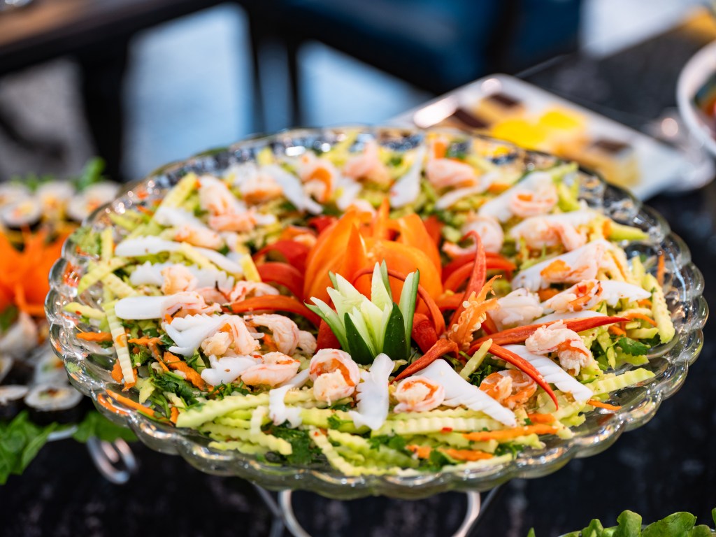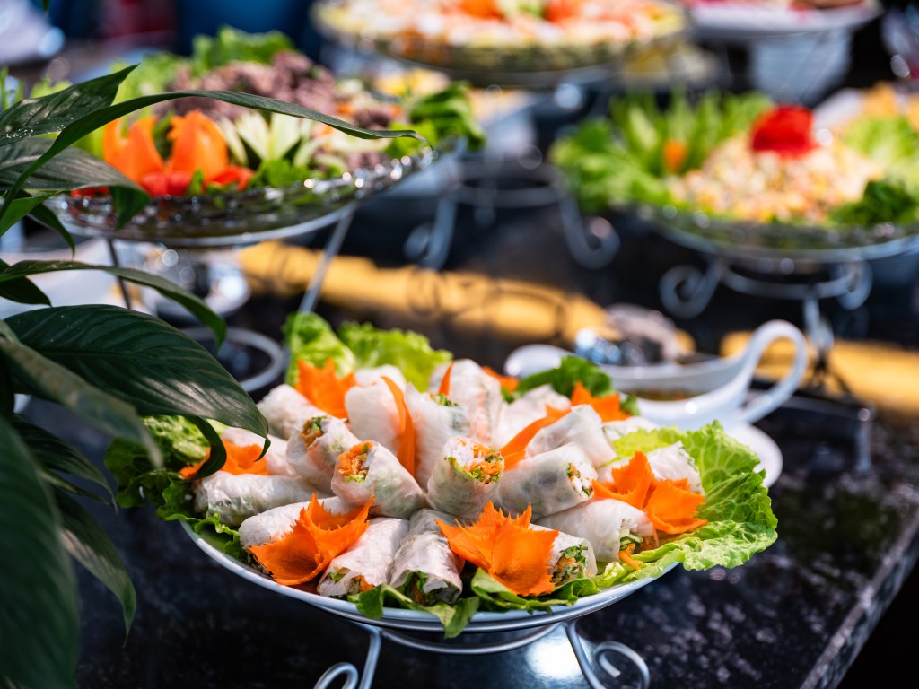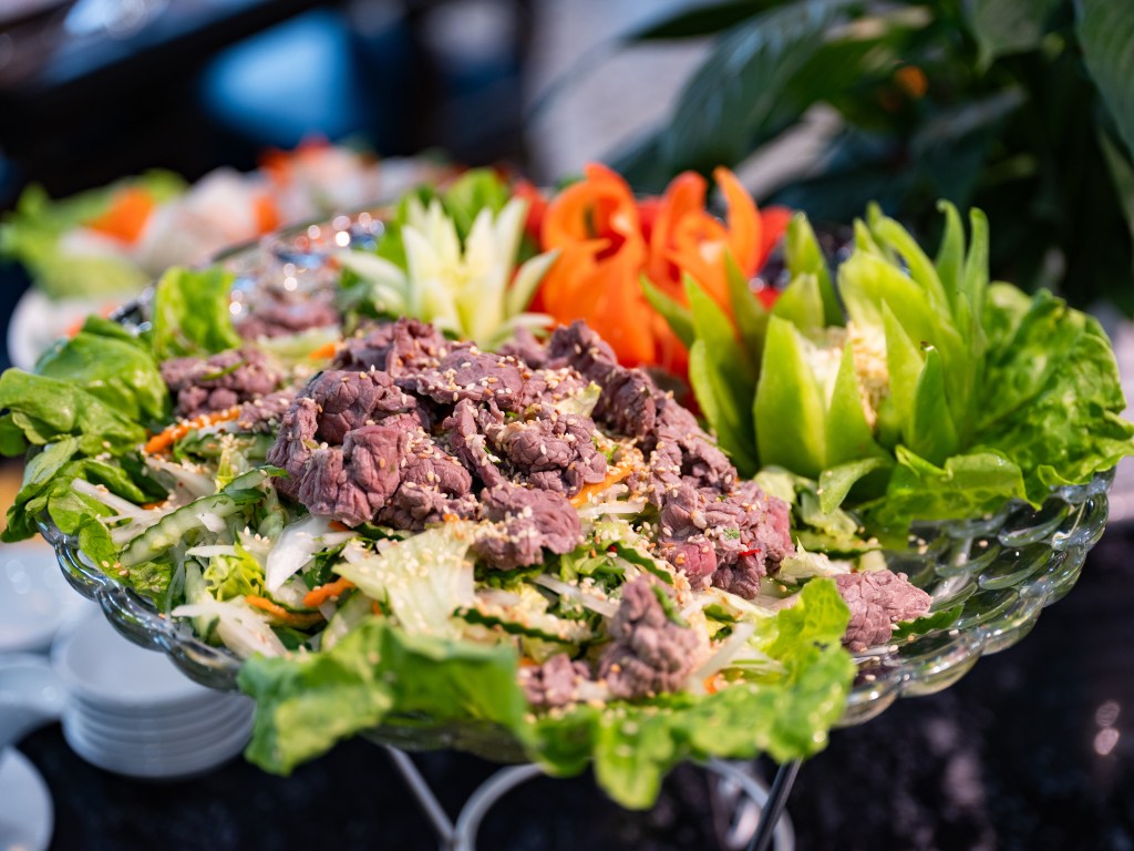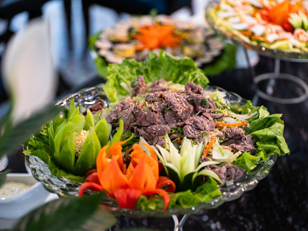 - Bữa trưa (Buffet trường hợp trên 20 khách, Set menu trường hợp dưới 20 khách)